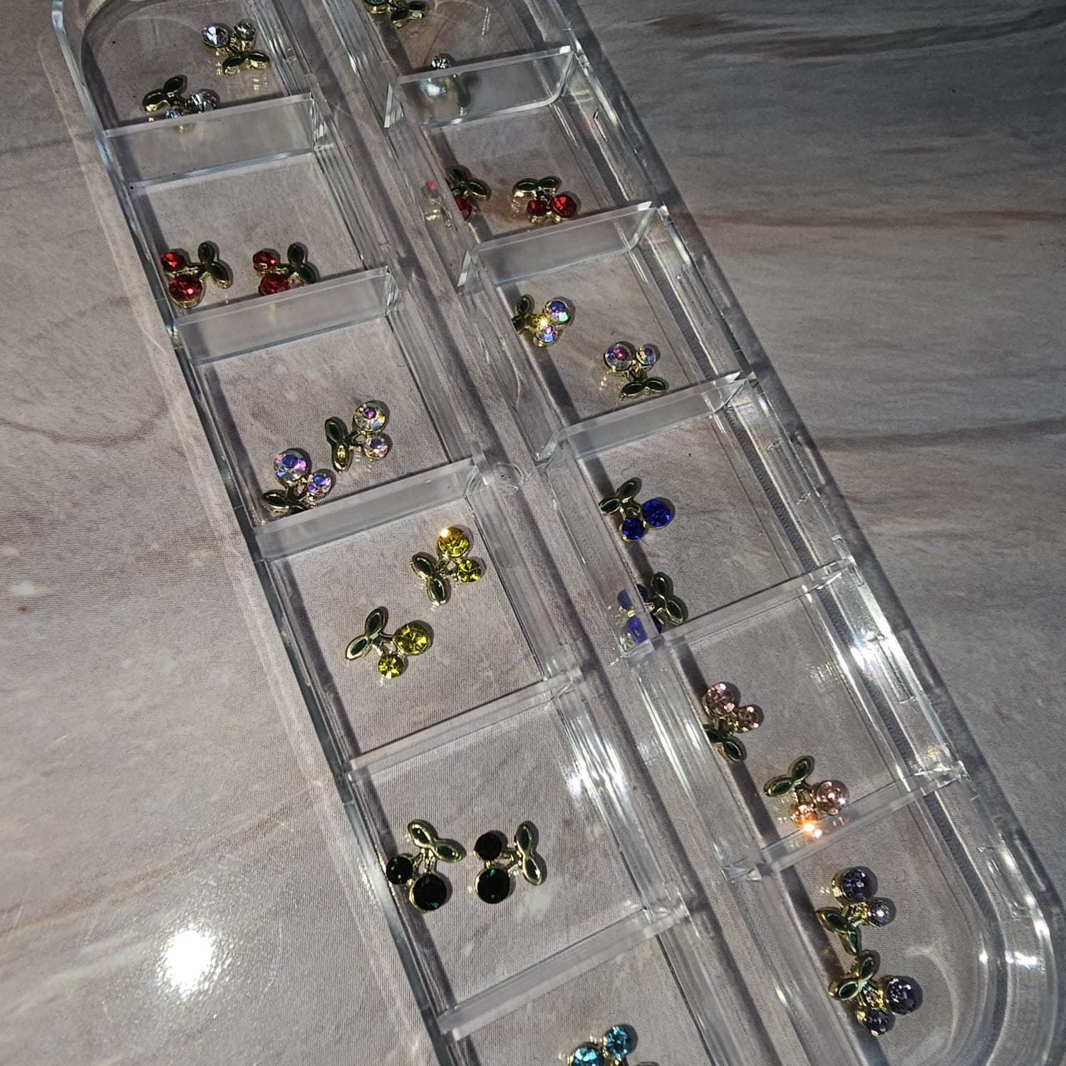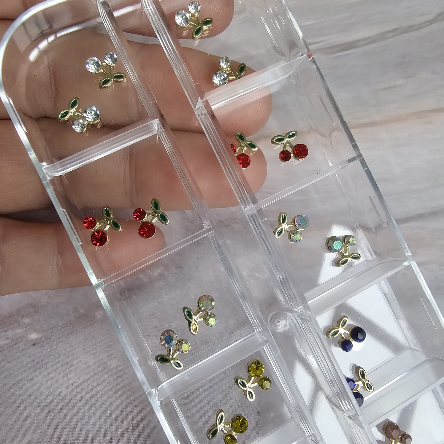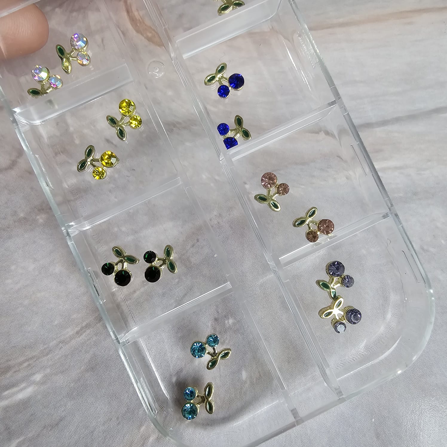 Box de apliques par uñas mini cerecitas de colores